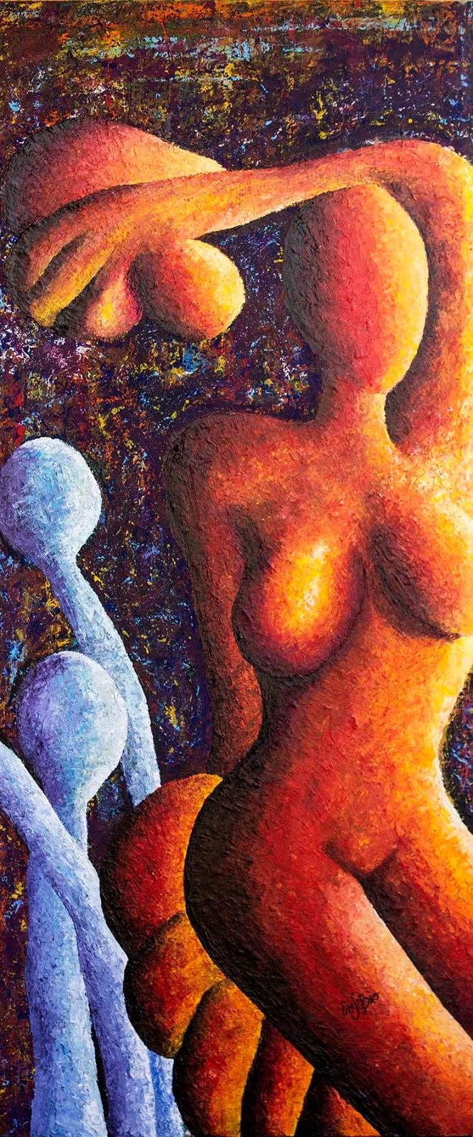 Sus lienzos no son solo piezas de arte, son portales hacia mundos distintos, inciertos, donde el dolor, la admiración, el rechazo, amor y, un sinfín de pensamientos y emociones se mezclan para dar como resultado obras que te llaman, te llenan, te vacían la cabeza de los propios criterios sin ninguna palabra, solo observando cada obra expuesta.