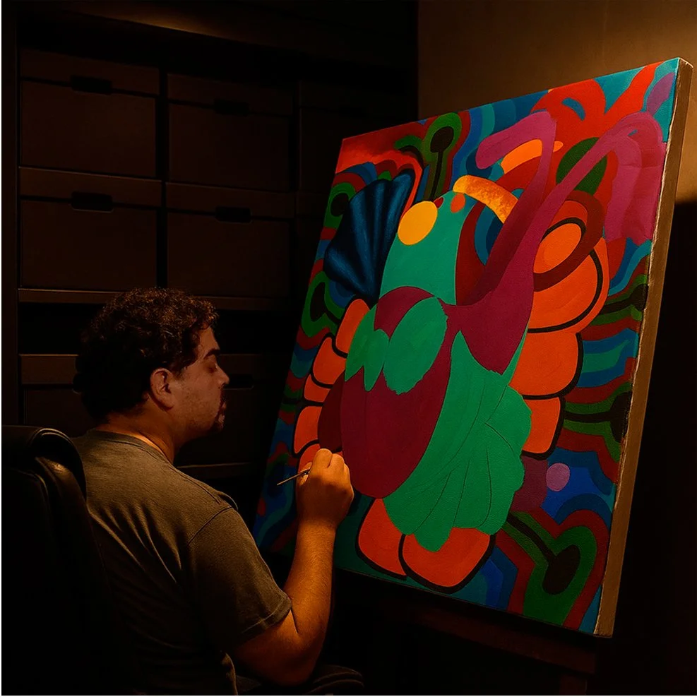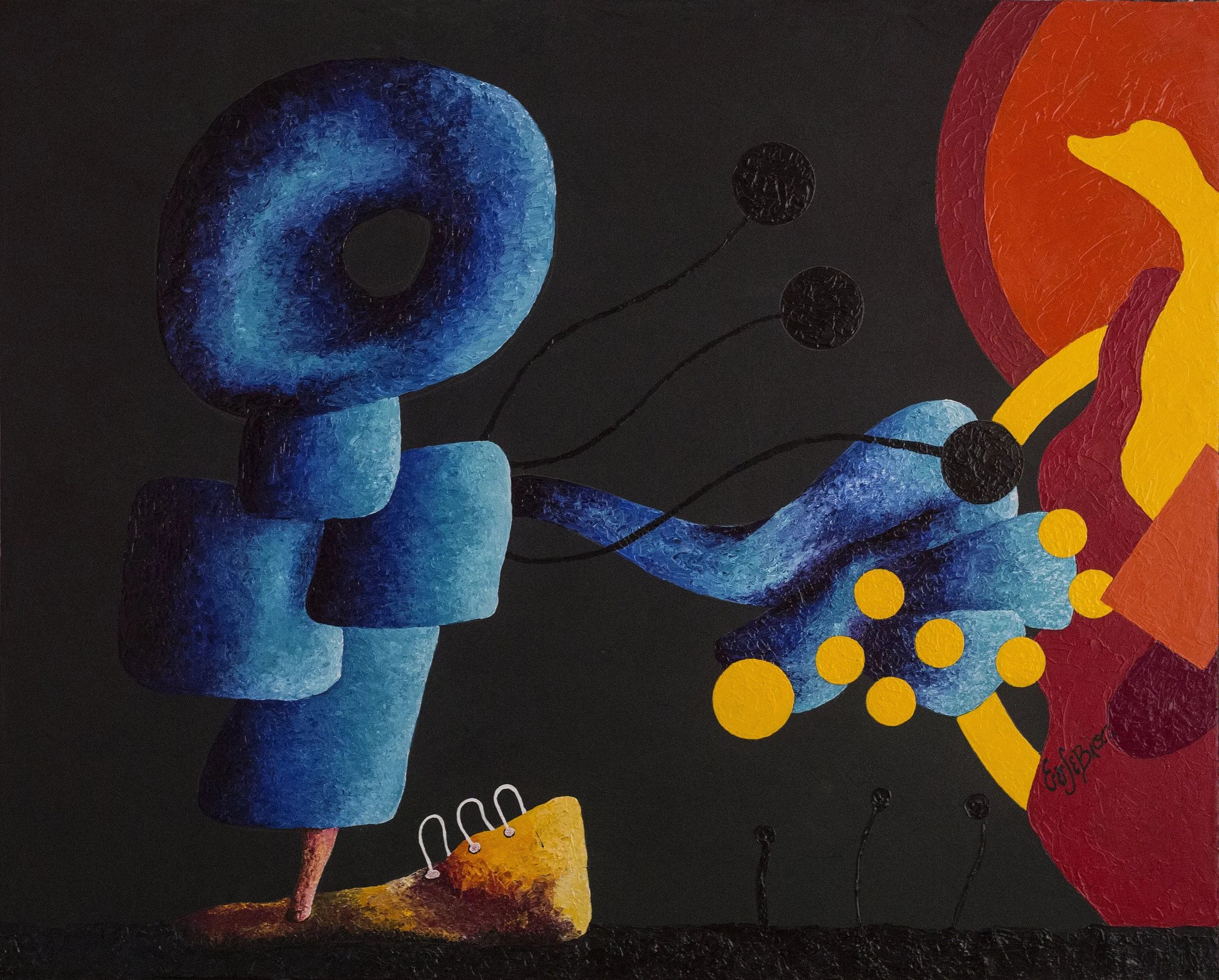 Soy un artista con un lenguaje pictórico particular, con instrumentos que utilizo para darle a mi mundo un valor universal, cifrandolo en claves que además de accesibles para el público, generen más preguntas que respuestas.